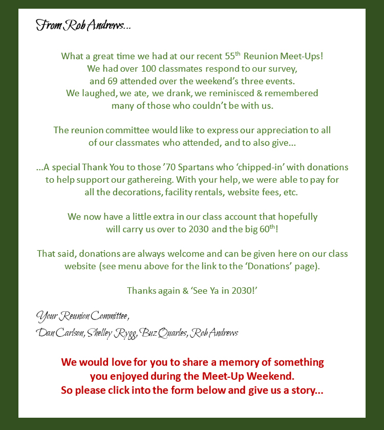 Such a great time!! Love you all and a great big hug and thank you to our great Reunion Committee!👏💗